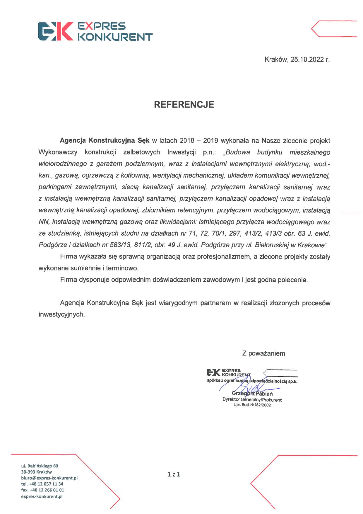 - Budowa budynku mieszkalnego wielorodzinnego przy ul. Białoruskiej w Krakowie